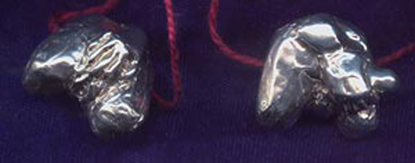 The amusing abstracted beads above are hollow cast of sterling silver and are roughly 20mm wide. If you wish to purchase any of these, please be sure to let me know whether you want male or female when ordering.