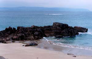 This time I did not get to go to Co. Donegal; such a pity. It is starkly beautiful there, with treeless mountains, dark bogs, and stunning beaches. The winds blow right in off the wild ocean. What struck me about the beach there was the color of both the aqua water and the ruddy granite sand.