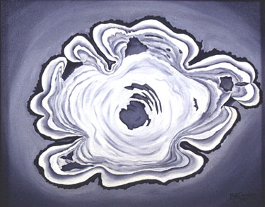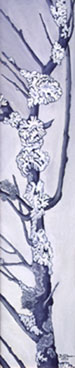 These next paintings, abstractions based on parts of trees, are one of my attempts to look for the beautiful in the very ordinary. Apple is simply a close look at a branch pulled from a pile of prunings one winter. The red cedar painting is based on one of the two ends of a cedar log cut from a tree that blew over in a storm. There is another based on the other end of the log, and not pictured here.