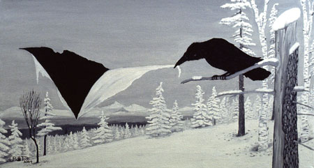 I like watching ravens in the snow. They seem so black against all the white, like a hole in the sky. One day I got to wondering, what if the raven was to tear a hole in the world? Hole in the Light of Day is my attempt at an answer.