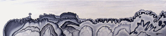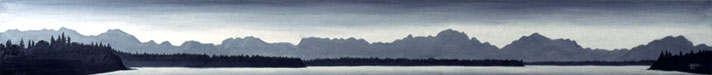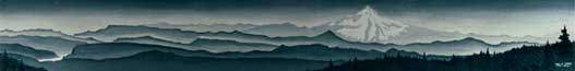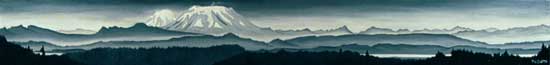 The Horizons Olympia paintings are part of a series that is eventually to include views from Portland, OR, Seattle, WA, Vancouver, BC, and Anchorage, AK. They reflect my fascination with the shapes formed where the earth meets the sky, and the way those shapes contribute to a sense of place, even when they are sometimes obscured by the city that occupies that space.