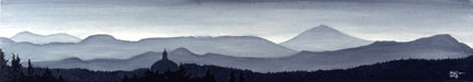 The Horizons Portland paintings are part of the series that includes the above paintings, and is to include images from Seattle, WA, Vancouver, BC, and Anchorage, AK. I made the sketches that these are based on from the area around the Willamette Stone, near Skyline Blvd. It somehow seems fitting to paint images of the views from the location from which much of the northwest was surveyed.