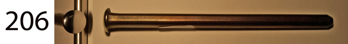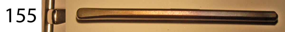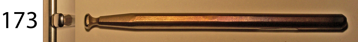 This tool tapers to a slender waist and then flares to a working face that has a sort of top of a bread loaf shape, and is 5 mm by 6 mm. These can be used as pushers in confined spaces, especially where there is to be deep undercutting. $30 each